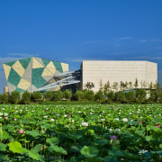 福州规划馆位于福州仓山区南江滨西大道199号,海峡国际会展中心东侧。规划馆的建筑造型设计从榕树和寿山石中获取灵感,立面造型由底层的透空柱廊向上逐渐演变为实墙面上的精巧窗洞,犹如枝繁叶茂、独木成林的榕树,而整个建筑犹如晶莹剔透、端庄高雅的寿山石屹立于闽江之畔。 -