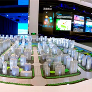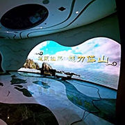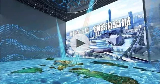展馆活动展厅分为序厅(主题艺术墙)、海之形(概况区)、海之源(城建历史区)、海之韵(建设成就区)、海之梦(未来规划区)、逐梦丝路(总规模型)六大部分,使参观者全面完整的了解城市历史,展望城市未来。主要的亮点在于一块LED大屏,它实际上也是一个大模型,通过结合立面跟水面,能产生互动,再加上舞台灯光,达到多媒体声光电一体化的效果。 -