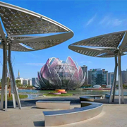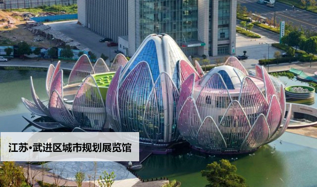 展馆活动一期部分为地下二层,2004年落成,有武进总体规划模型、历史文化展厅、廉政建设展厅及核心区、高新城、创新城、农林牧副渔、科教文卫、村镇建设、报告厅、绿色建筑产业集聚示范厅、太湖湾等展厅;二期为莲花馆,2013年9月落成,由形态各异的三朵莲花组成,主体及花瓣均采用钢结构,建筑采用高科技玻璃节能覆膜、中水回用、智能化空气调节系统等低碳节能技术,为绿色三星级建筑,有西太湖科技城展厅、领导关怀及城市成就展厅、未来展厅等。 -