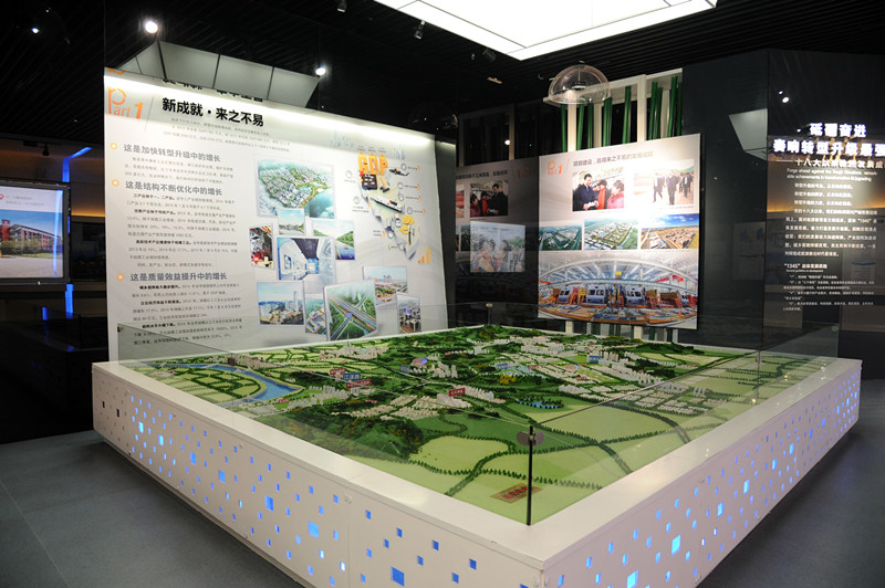 “两型社会”规划:充分利用空间,用艺术化的曲线造型分隔出云龙示范区、东部新城和南部新区的独立展示空间。云龙示范区主墙面为精心制作的壁挂模型。东部新城和南部新区则以未来城市发展方向和重点为内容,展示城市蓝图和愿景。
