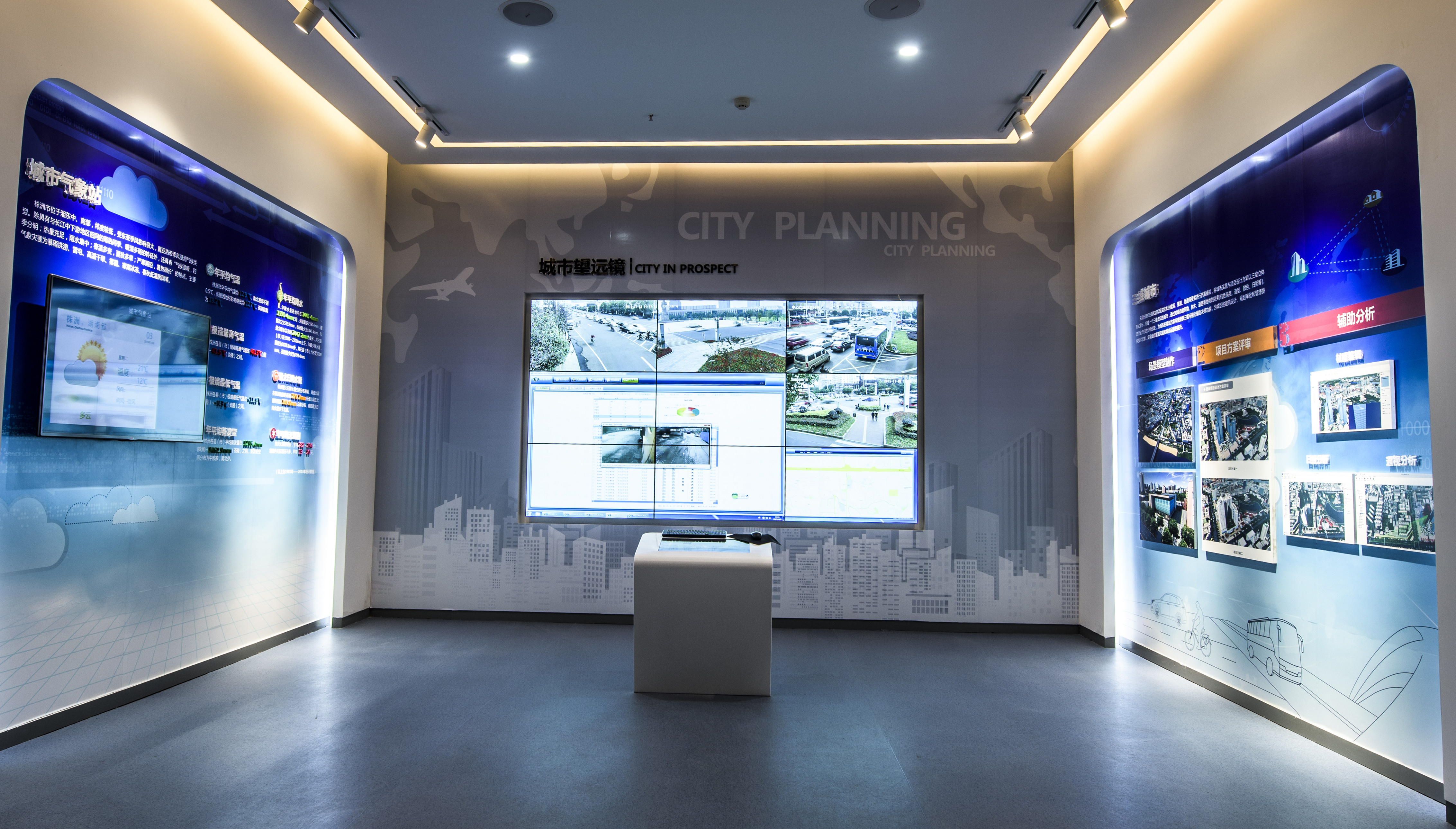 交通规划:我们用壁挂模型的形式,将株洲十分便利的水陆空交通优势以动感光纤的形式,动态的展现。