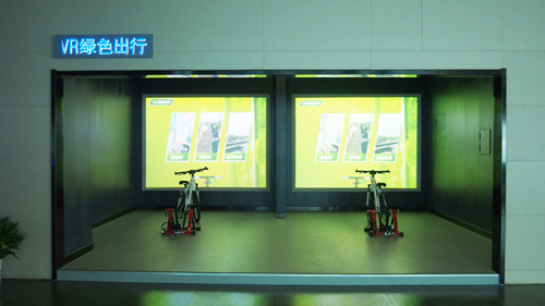 通过实体自行车和绿道三维场景屏幕的方式进行展示,让参与者体验常州市绿道交通规划建设成就。同时,通过自行车模拟骑行,达到引导市民支持环保,全民健身、绿色出行的最终目的。
