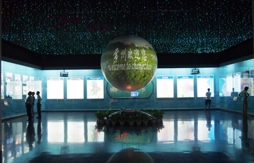 序厅的中心位置是徐徐转动的地球,用视频投射出不断发展的常州。