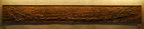 用实景结合绘画营造环境气氛,再现老常州的水乡街景。幻影成像—“老常州的一天”,用一种新颖的展示形式,直观地展示了常州传统市民生活和民族风情。运用沙盘模型配合一幅长16米,宽2米的紫铜浮雕长卷“毗陵古韵”,展现清末民初常州老城厢的规模。