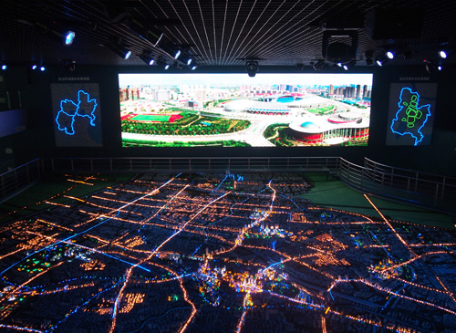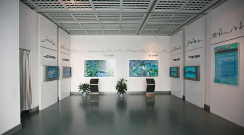 展厅共分四层,一层:序厅、历史厅、180度环幕厅;二层:成就与专项规划展厅;三层:规划公示厅;四层:总体规划模型展厅。