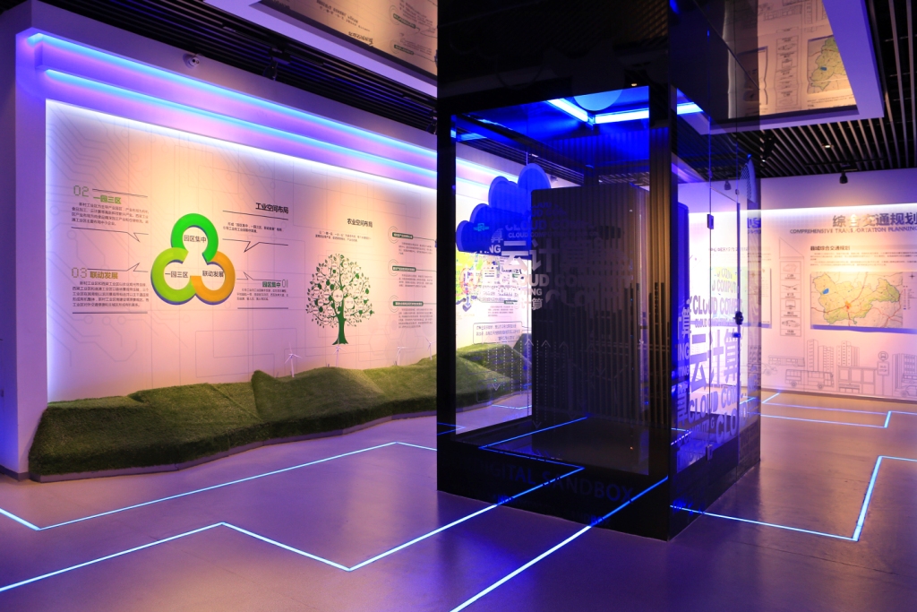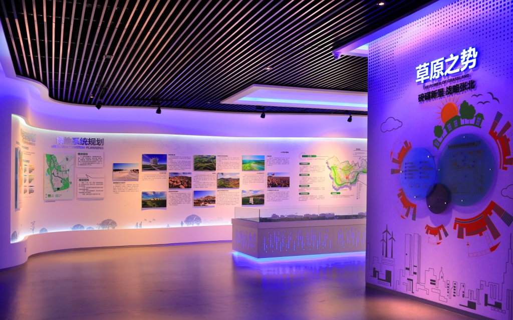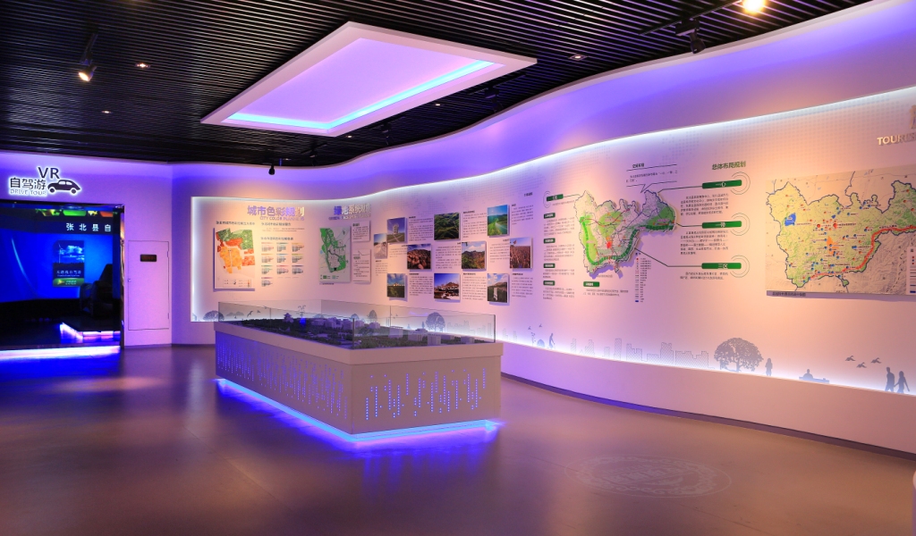 展示了张北的历版总体规划、控制性详细规划以及各类专项规划;采用投影沙盘的形式诠释了 "四规合一";云计算展柜既是展馆的控制中心,同时也展示了张北云计算现状、规划及优势;另外,在这里您还可以亲身体验草原天路生态游和城市观光游两条VR自驾路线。