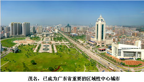 茂名市位于祖国的南海之滨,广东省西南部的鉴江平原。现辖茂南区、电白区,代管高州市、化州市、信宜市,陆地总面积11459平方公里,2013年末全市户籍人口757.7万人。茂名是我国石化工业较为发达的城市之一,是发展中的港口城市,也是广东省人口较多、农业经济发达的城市,其农业总产值、粮食总产量、水果总产量、油料作物总产量、猪肉总产值在广东省地级市中均排第一位。茂名先后被授予“全国园林绿化先进城市”、“国家园林城市”、“中国优秀旅游城市”等称号。