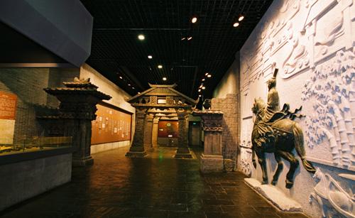 龙城沿革 运用历史怀旧的氛围重温了常州的过去。 淹城模型和高浮雕的季子像,直观地展示常州悠久的历史。 以“延陵”、“毗陵”、“晋陵”和“兰陵”构成纵深的展厅空间。展厅两侧配有常州古代行政区划沿革年表、龙城来历、常州城垣演变图和电子图表,再现了常州古城几度变迁的过程。