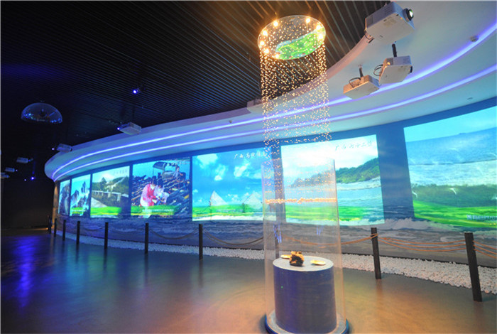 大量采用电子设备,结合部分实物营造光影氛围,展现广西的“天绘山水之美”、“边关探秘之美”、“海滨寻梦之美”、“岭南风情之美”,“璀璨人文之美”、“八桂方物之美”和“辉煌广西”7个部分,是广西第一个纯媒体打造的展厅。