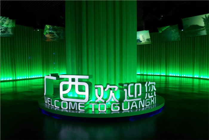 以“广西欢迎您”为主题,用现代技术巧妙展现广西概况、历史沿革、社会经济发展概况、历史建筑、地域文化等内容。