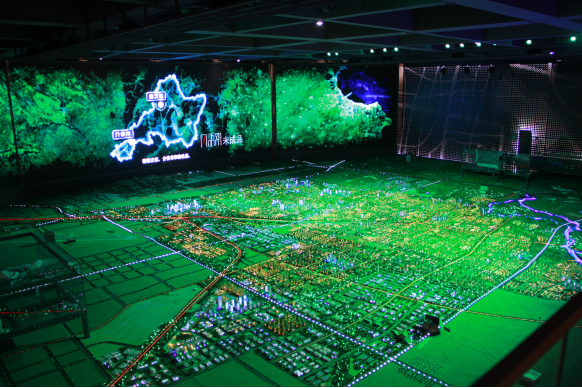 本厅是展示馆的一大亮点,1100平方米的总规大沙盘和LED三折屏影片互动演示,声、光、电的巧妙结合,为您详解晋中的发展战略和规划蓝图,感受这座城市的盎然生机和蓬勃崛起。