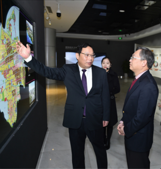 11月16日,安庆市委副书记、市长陈冰冰一行参观园区规划展示馆。苏州市委副书记、市长曲福田,苏州市委常委、园区党工委书记徐惠民陪同参观。