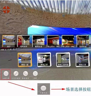 自助导览由馆内各展区的“全景图片、讲解词语音和展馆地图”共同构成。我们按照展馆常规观展路线组织“自助导览系统”,游客可按照当前全景图上标注的指示方向步入下一展区,同步切换至该展区全景即可收听讲解词。使