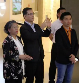 5月17上午,远道而来的马来西亚客商一行6人参观我馆。在1个小时的参观过程中,来宾们不时拿出手机对感兴趣的内容拍照记录。来宾们重点了解了中心城区南塬片区规划。