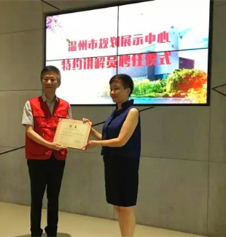 温州市规划展示中心自2016年1月1日正式开馆以来,已接待了近15万人次,成为了温州展示城市形象的名片和市民了解并参与城市规划的窗口。为了更好地宣传温州规划,2017年5月31日,市规划展示中心特别聘请了6位温州各领域的知名人士担任特约讲解员,分别是作家(《温州两家人》编剧)李涛、温州广电传媒集团主持人陈天颖、自行车运动员张金城、获邀参加APEC领导人会议的肯恩大学学生夏雪、青年歌唱家刘婕以及温州日报报业集团资深记者、评论员朱闻武。