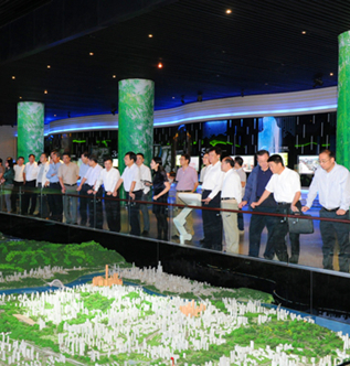 周江勇一行参观了两江新区规划展览馆,详细了解两江新区的战略定位、交通区位、产业布局和功能平台等。周江勇对两江新区加快布局战略性新兴产业和打造“一半山水一半城”表示赞赏。他表示,两江新区功能定位清晰,产业布局合理,生态保护有力,有良好的示范作用,值得借鉴学习。