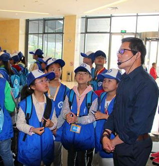 4月29日上午,怀远县新城实验学校的40余名新华小记者走进怀远县规划展示馆。展示馆李国华馆长为小记者们引导并解说,他希望小记者们好好学习,长大可以为建设家乡出力。