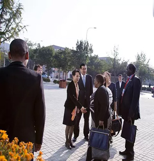2016年10月10日下午,非洲英语国家政党理论干部考察团,苏丹副议长巴德里娅·苏莱曼·阿巴斯,纳米比亚人组党中央党校校长、前副总理马克·穆克索·豪西库等十个国家政党代表一行到大连市规划展示中心参观。市委党校副校长宋海松、规划展示中心主任黎靓等陪同。