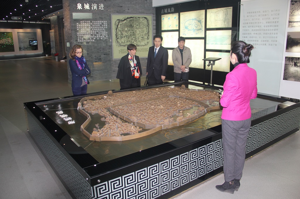 10月26日,法国雷恩市副市长乔斯琳娜·布亚尔女士一行两人,赴济南市城市规划展览馆参观。通过讲解,乔斯琳娜·布亚尔女士仔细参观了展览馆的全部内容,在深入了解我市经济社会发展和规划建设情况的同时,就其关心的我市远景发展目标、规划设计实施、泉水文化的亲民政策、历史建筑保护和城镇化实施过程中面临的困难等问题认真进行了探讨交流,对我市城市色彩规划、泉水保护利用、历史文化名城保护规划等工作给予充分肯定。