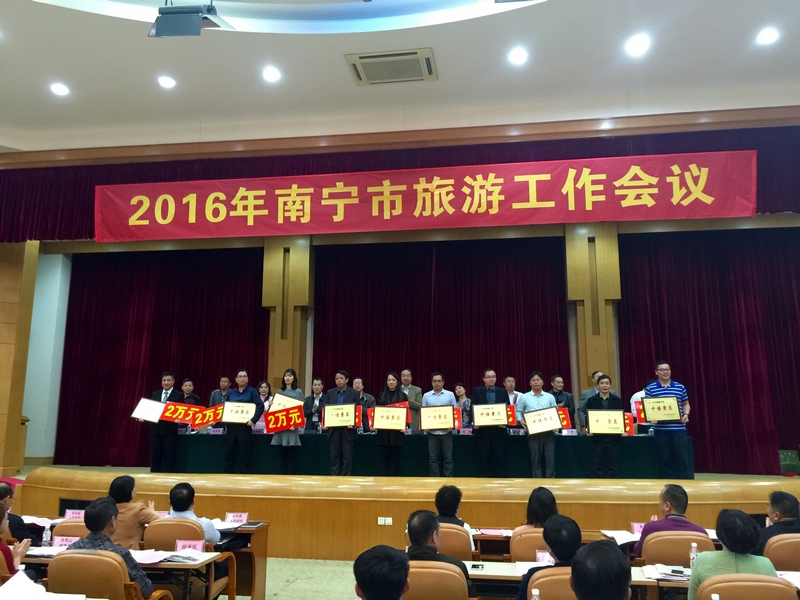 3月9日下午,2016年南宁市旅游工作会议在南宁市召开,本次会议表彰了2015年度十佳景区、十佳星级旅游饭店、十佳旅行社和十佳导游员等单位和个人。广西规划馆获得“十佳景区”荣誉称号;讲解员谢亦寻、邓静获得“十佳导游员”荣誉称号。